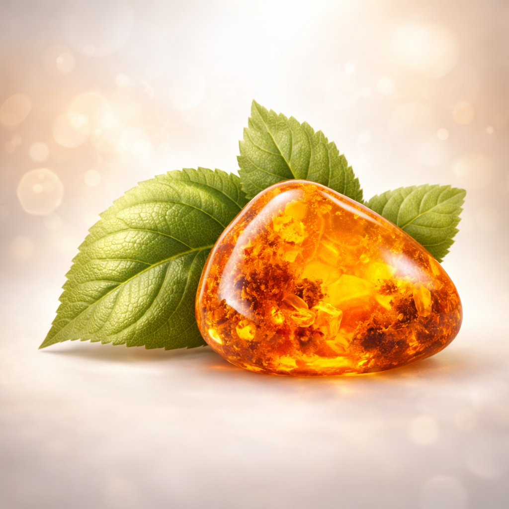 A borostyán nem csupán egy kő, hanem egy történet. Évmilliók lenyomata, a természet lassú, türelmes munkájának eredménye. Egykor élő fa gyantája volt, amely idővel megszilárdult, megőrizve mindazt, amit magába zárt. Ez a folyamat mélyen összecseng a belső munkával és az önismeret útjával. A hagyomány szerint a borostyánkő a melegség, a biztonság és a belső stabilitás jelképe. Nem rideg és nem éles – puha fényt áraszt, megnyugtat, megtart. Úgy tartják, segít elengedni a felgyülemlett feszültségeket, támogatja az érzelmi egyensúlyt, és teret ad annak, hogy a múlt tapasztalatai ne teherként, hanem erőforrásként legyenek jelen. A mentálhigiénés folyamatban is gyakran jelennek meg régi lenyomatok, elraktározott érzések, kimondatlan történetek. A borostyán annak szimbóluma, hogy ezekhez gyengéden is lehet közelíteni: nem siettetve, nem feltépve, hanem biztonságos közegben, elfogadással. A borostyánlevél a növekedést és a kapcsolódást idézi. A levelek összekapcsolódnak, kapaszkodnak, élnek – ahogyan az emberi kapcsolatok és a belső erőforrások is megtartanak a nehezebb időszakokban együtt!